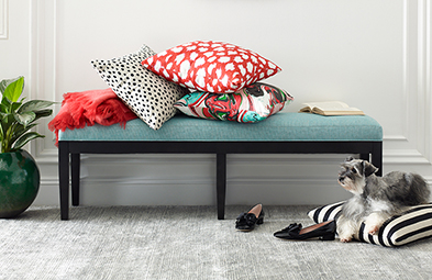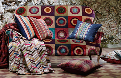Featuring a playful mix of signature bold, surprising prints and woven geometrics, this collection is layered with sophisticated boucle and velvet textures.