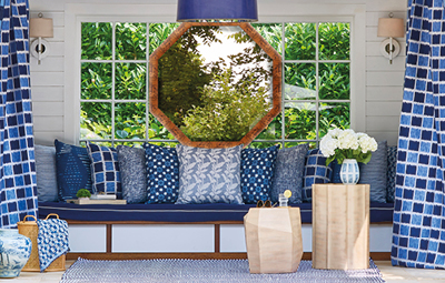 Thom Filicia's Latitude indoor/outdoor collection features a mix of large and small-scale patterns, stripes, textures and solids, for elegant and easy spaces.