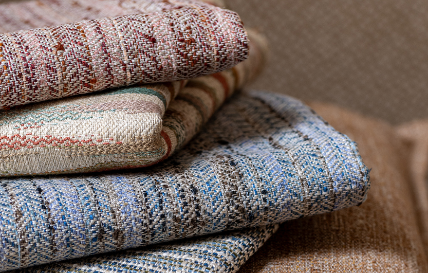 Ultra-modern, fresh and fun prints, weaves and linens in a mix of calm neutrals and explosive colours