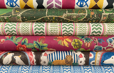 A menagerie of eclectic motifs, novelty patterns and recolourations of iconic French archival textiles, create a bold collection for Brunschwig & Fils.
