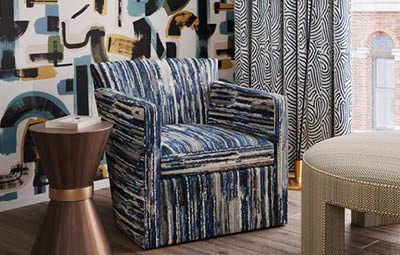 Kelly Wearstler a créé une collection de tissus audacieux et inspirés qui montrent son engouement pour des matériaux naturels et des motifs graphiques aux couleurs exceptionnelles.